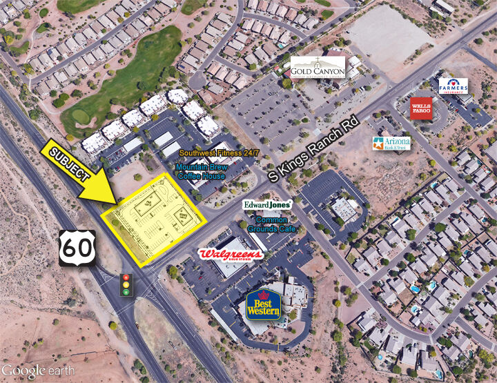 Available pads for Ground Lease or Build-to-Suit on the NWC of Kings Ranch Rd & US-60 in Gold Canyon, AZ. 61,204 SF available. Contact us for additional information. (Agent/Owner)